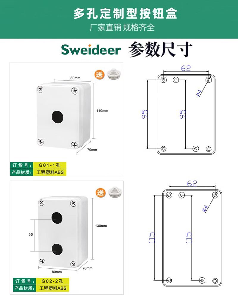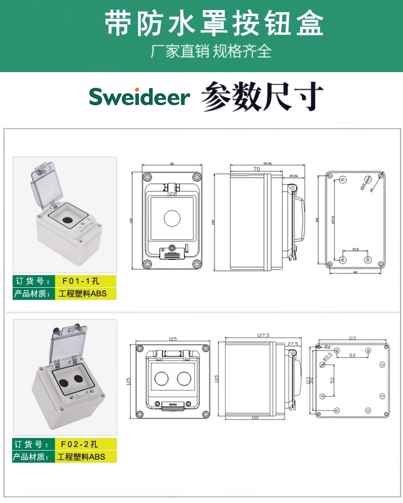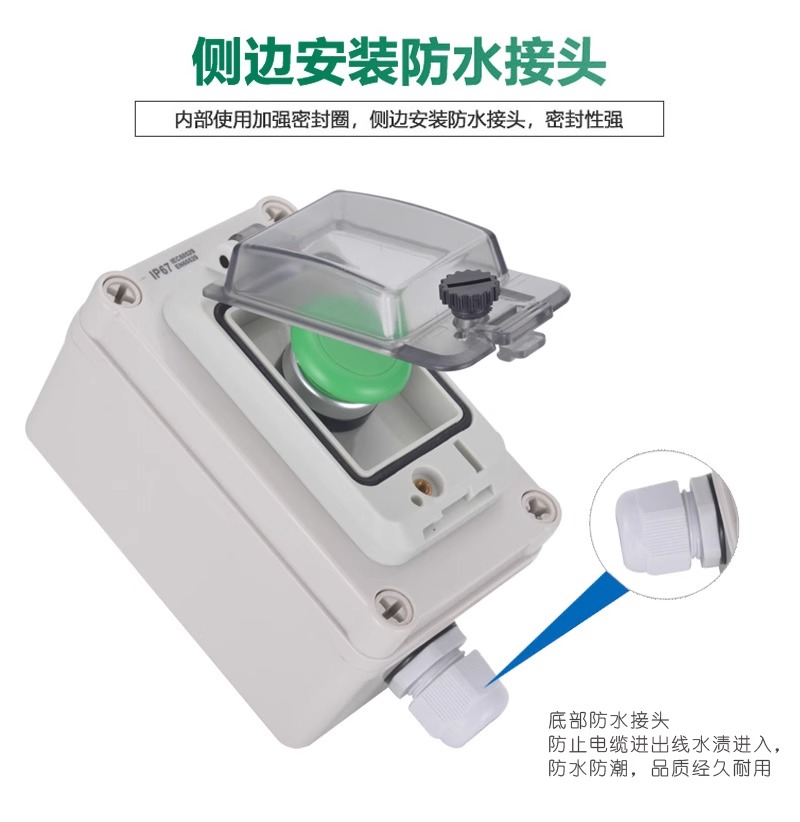 索维户外防水按钮开关控制盒自复自锁旋钮接线盒急停启动加厚盒箱