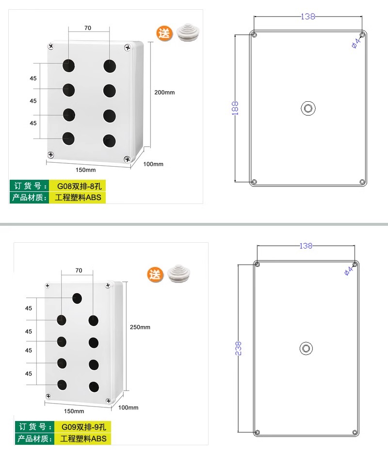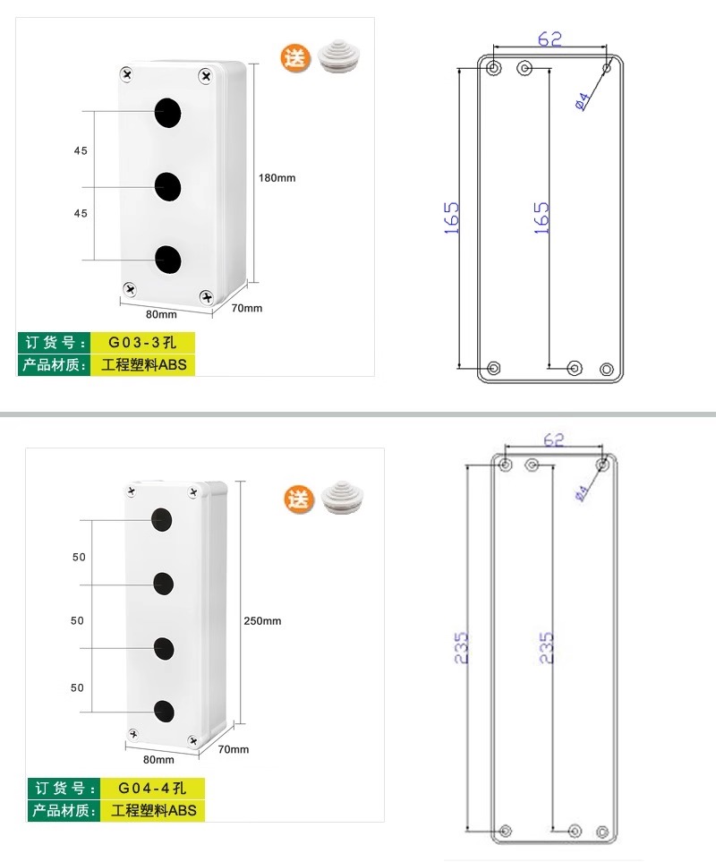 开关控制盒急停防水按钮盒指示灯盒塑料电气双排自复位可开孔22mm