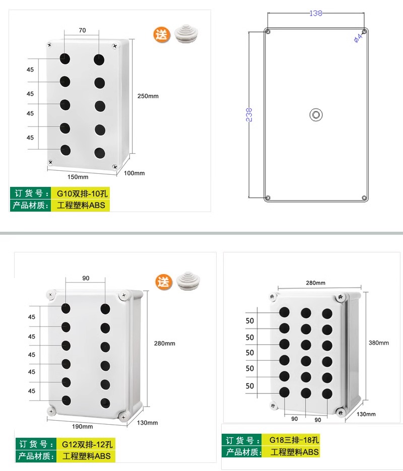 12345孔防水按钮开关控制盒按钮盒急停防尘防水按钮加厚黄灰两色