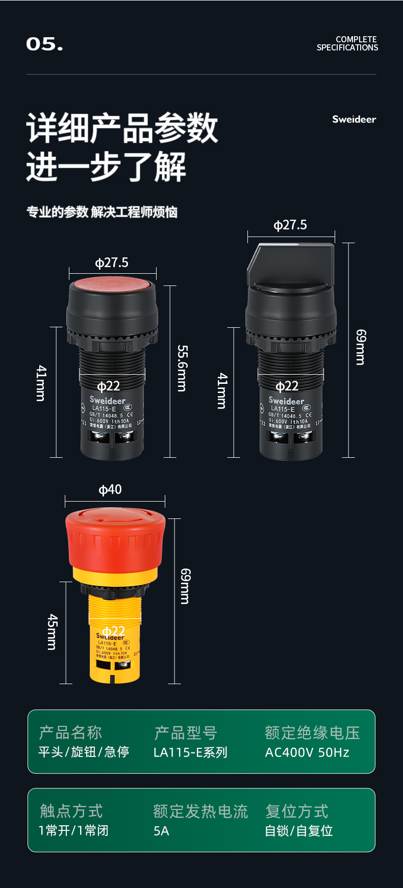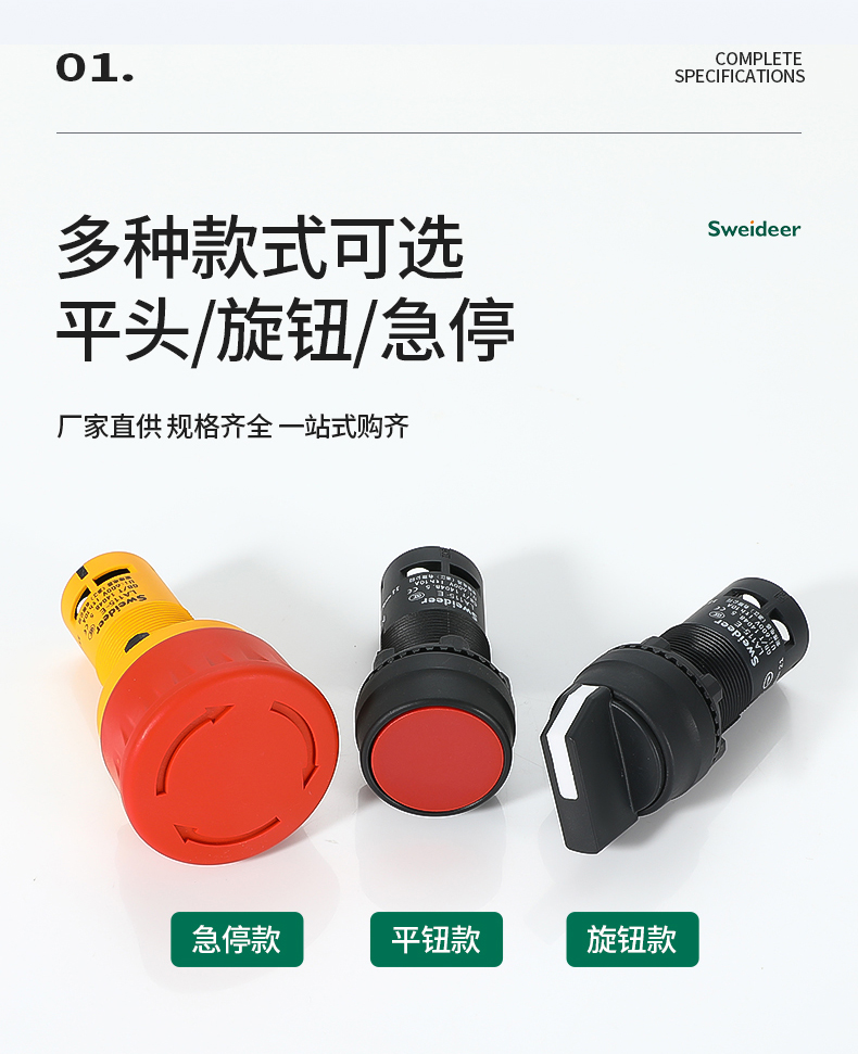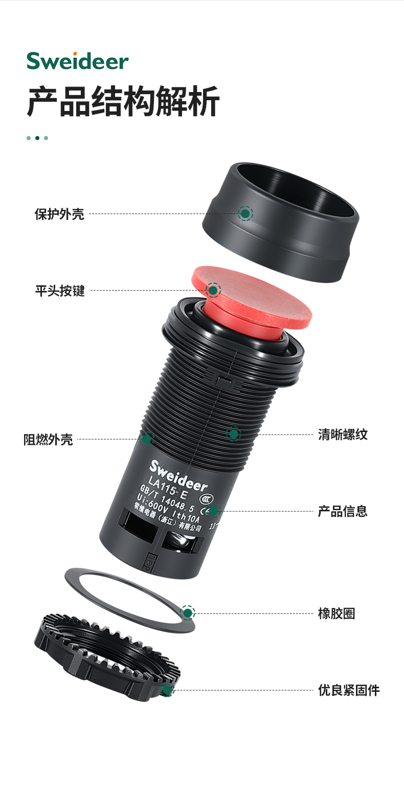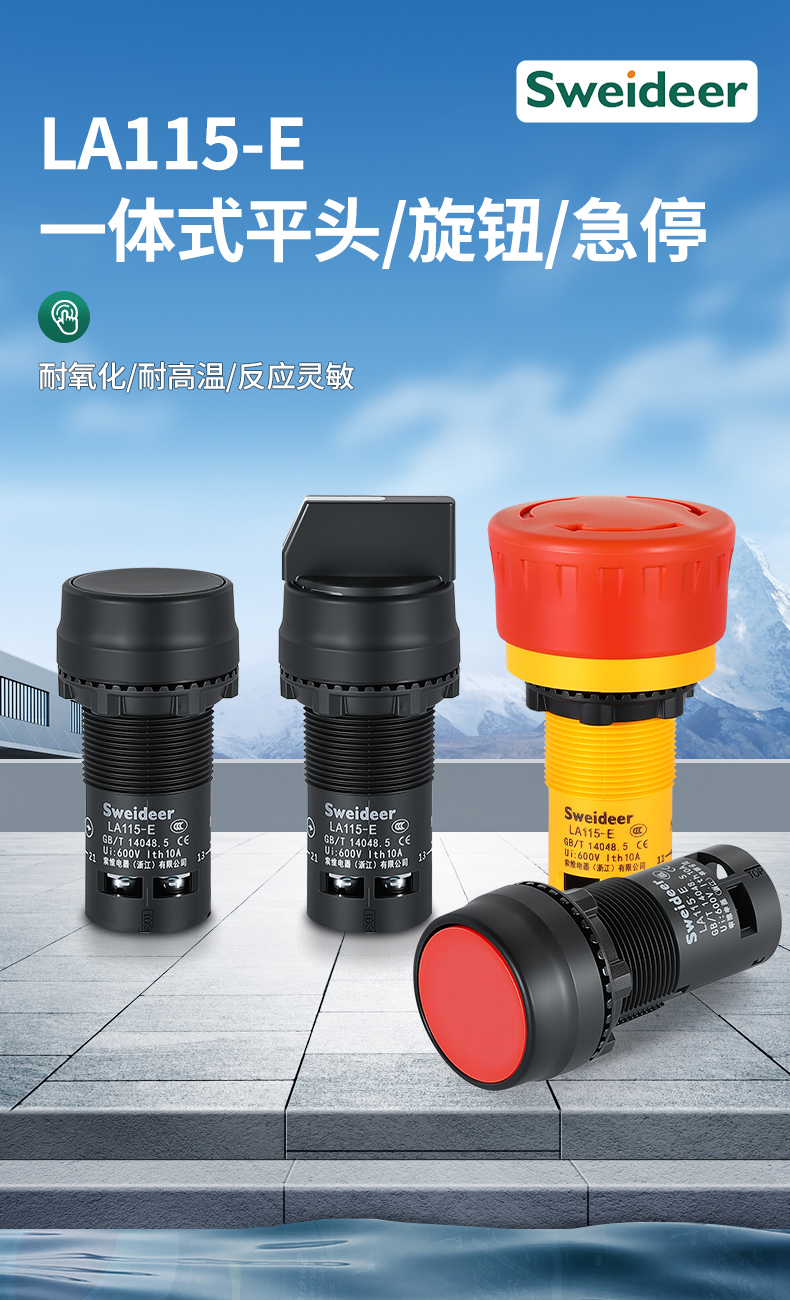 LA155-E3系列Sweideer一体式开孔22MM急停按钮开关带自锁蘑菇头自复位点动按钮