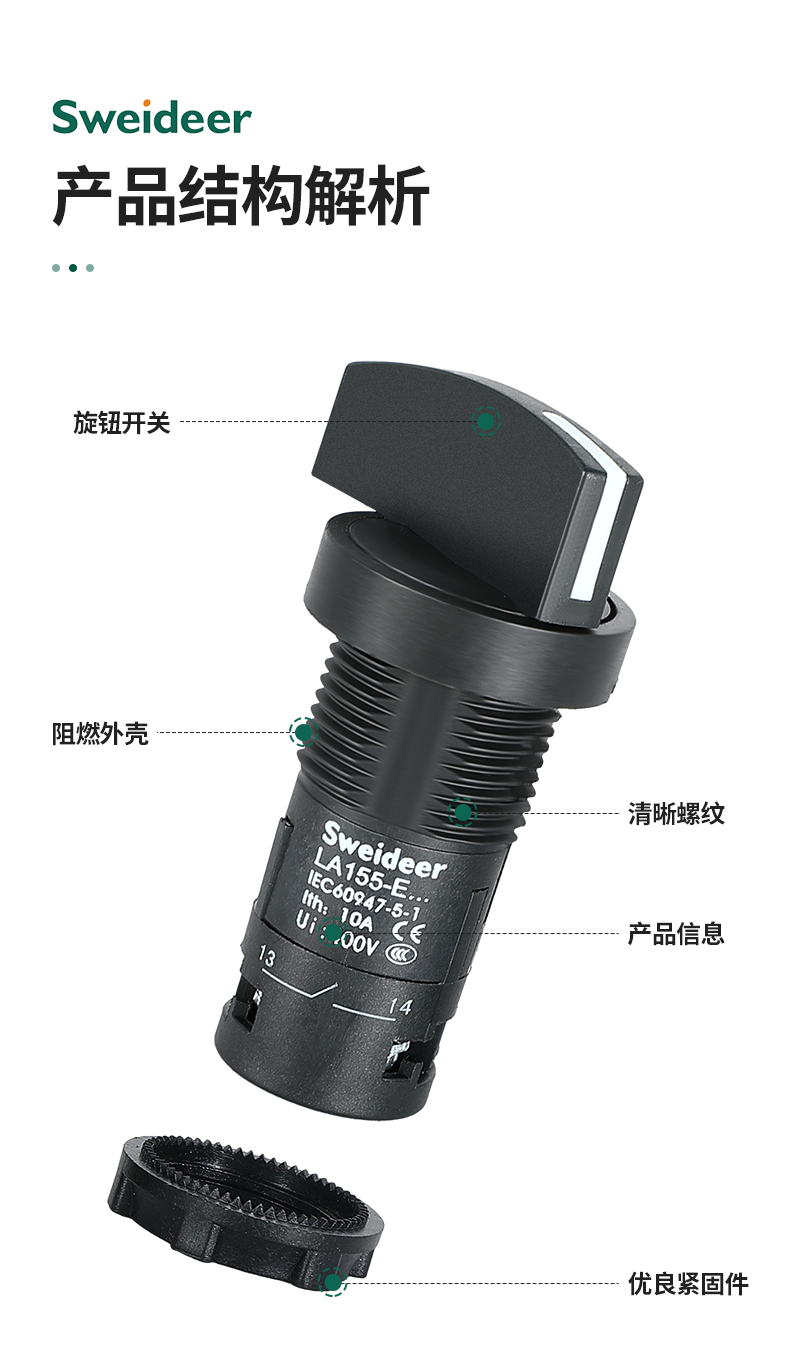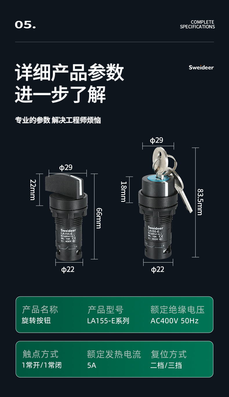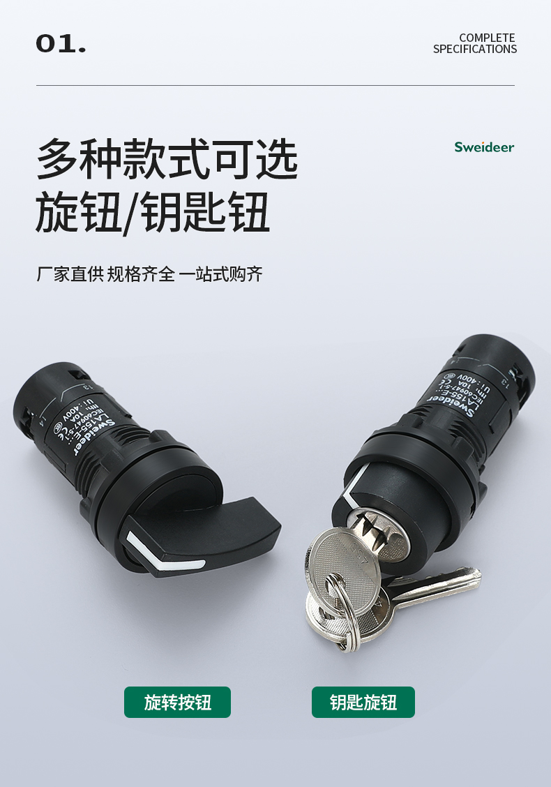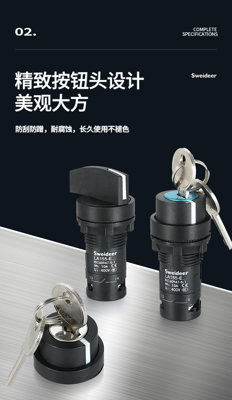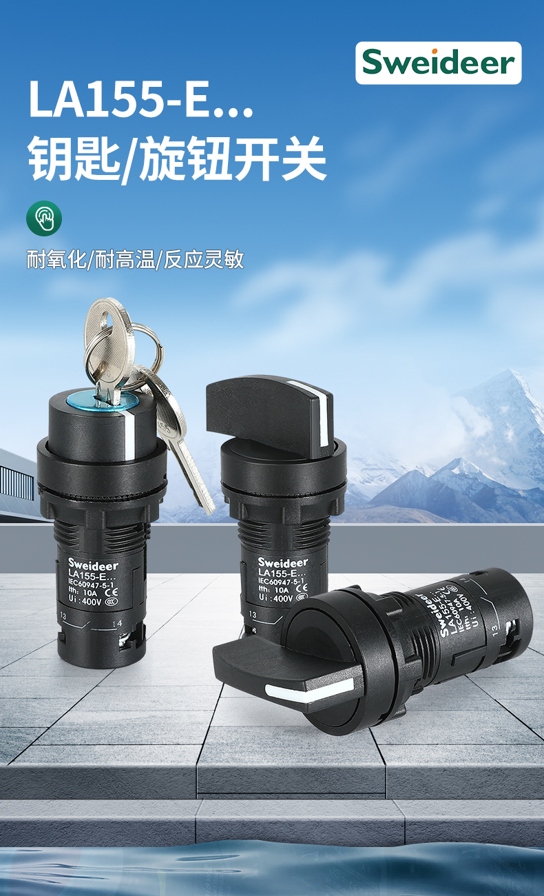 LA155-E3系列Sweideer 一体式旋钮开关 ED21钥匙开关二档三档电源转换开关22MM