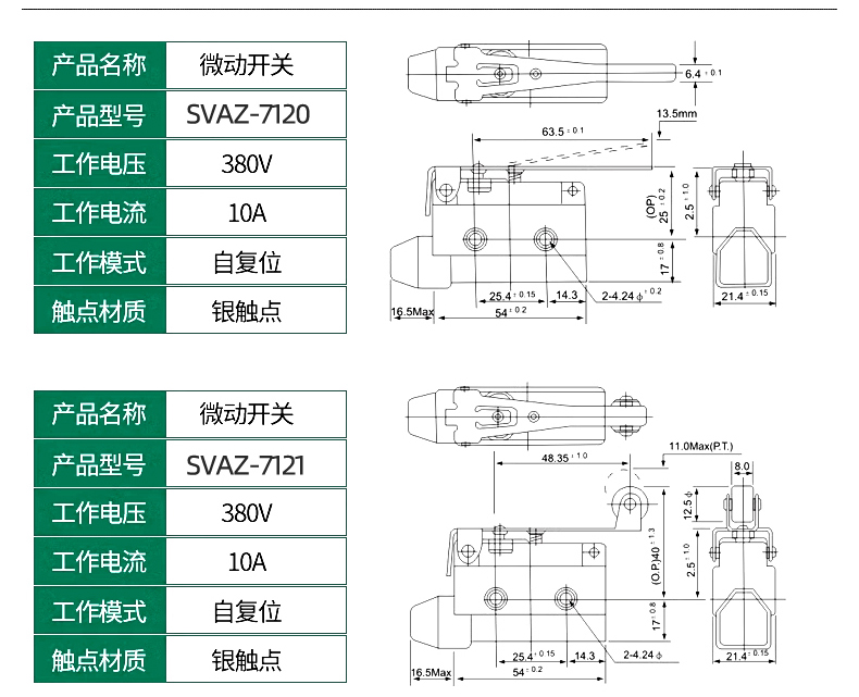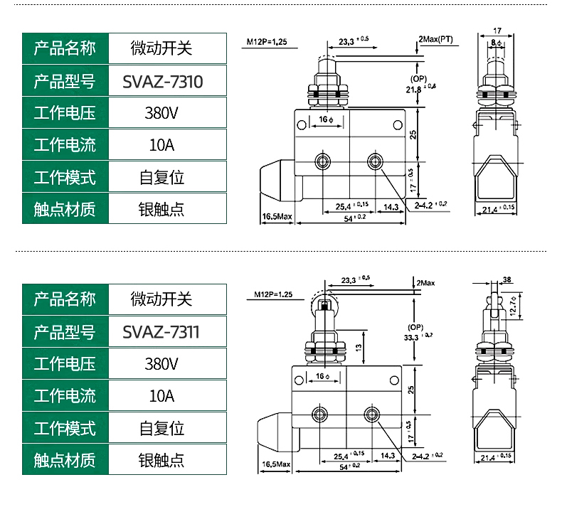 SVAZ系列行程限位微动开关小型触碰TZ7311AZ7312复位7121定位7141