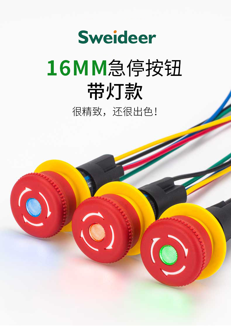 LA155-E3系列Sweideer一体式开孔22MM急停按钮开关带自锁蘑菇头自复位点动按钮