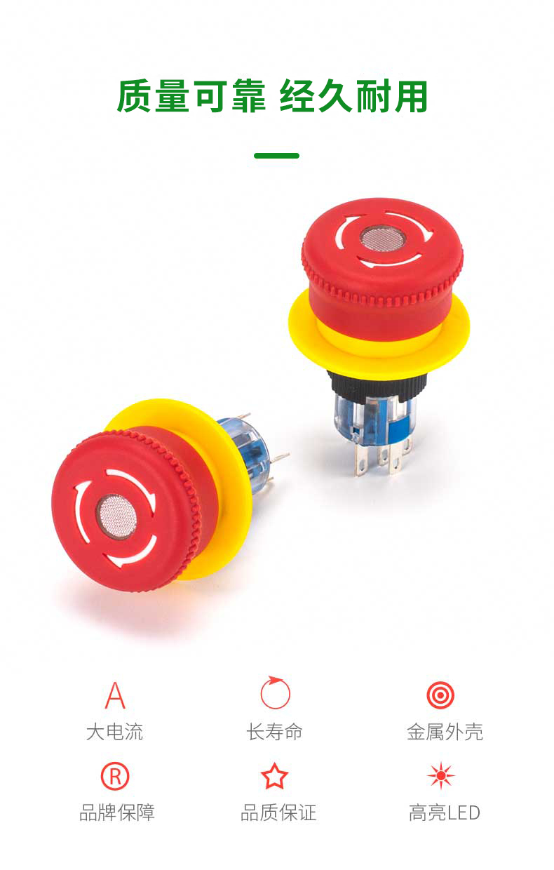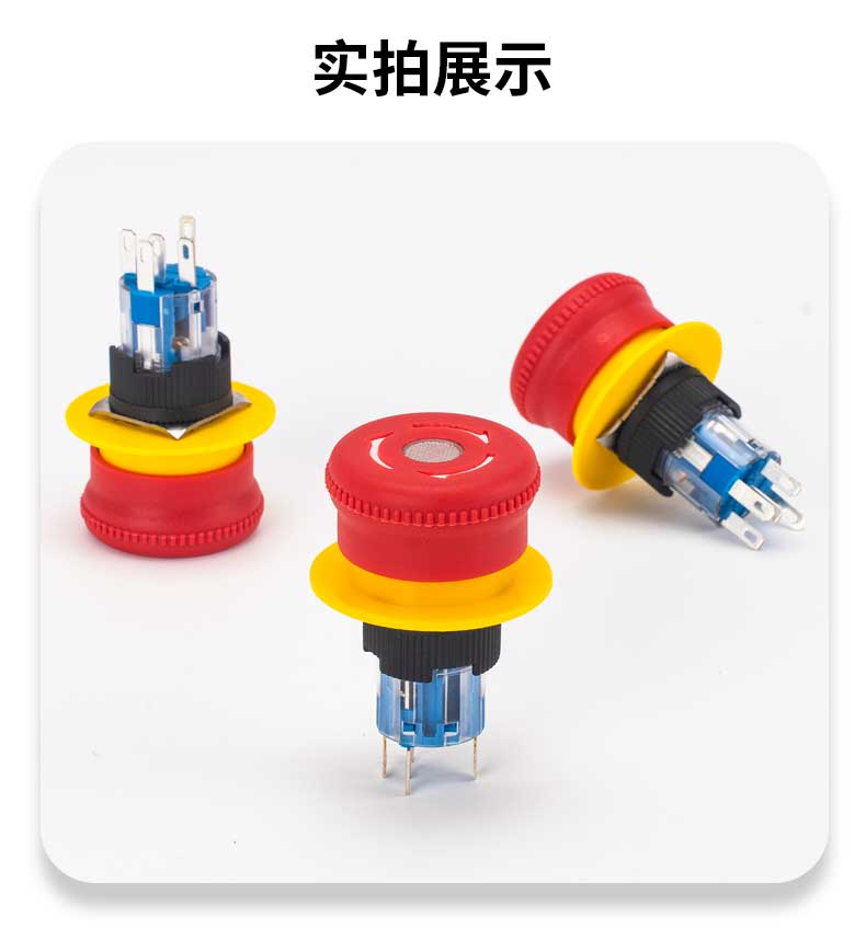 16MM急停按钮开关 带灯蘑菇头24V紧急停止电梯 LA16-M11Z急停开关