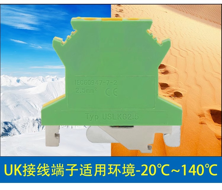 UK接线端子黄绿双色USLKG-2.5 接地端子UK2.5B平方电压端子导轨式
