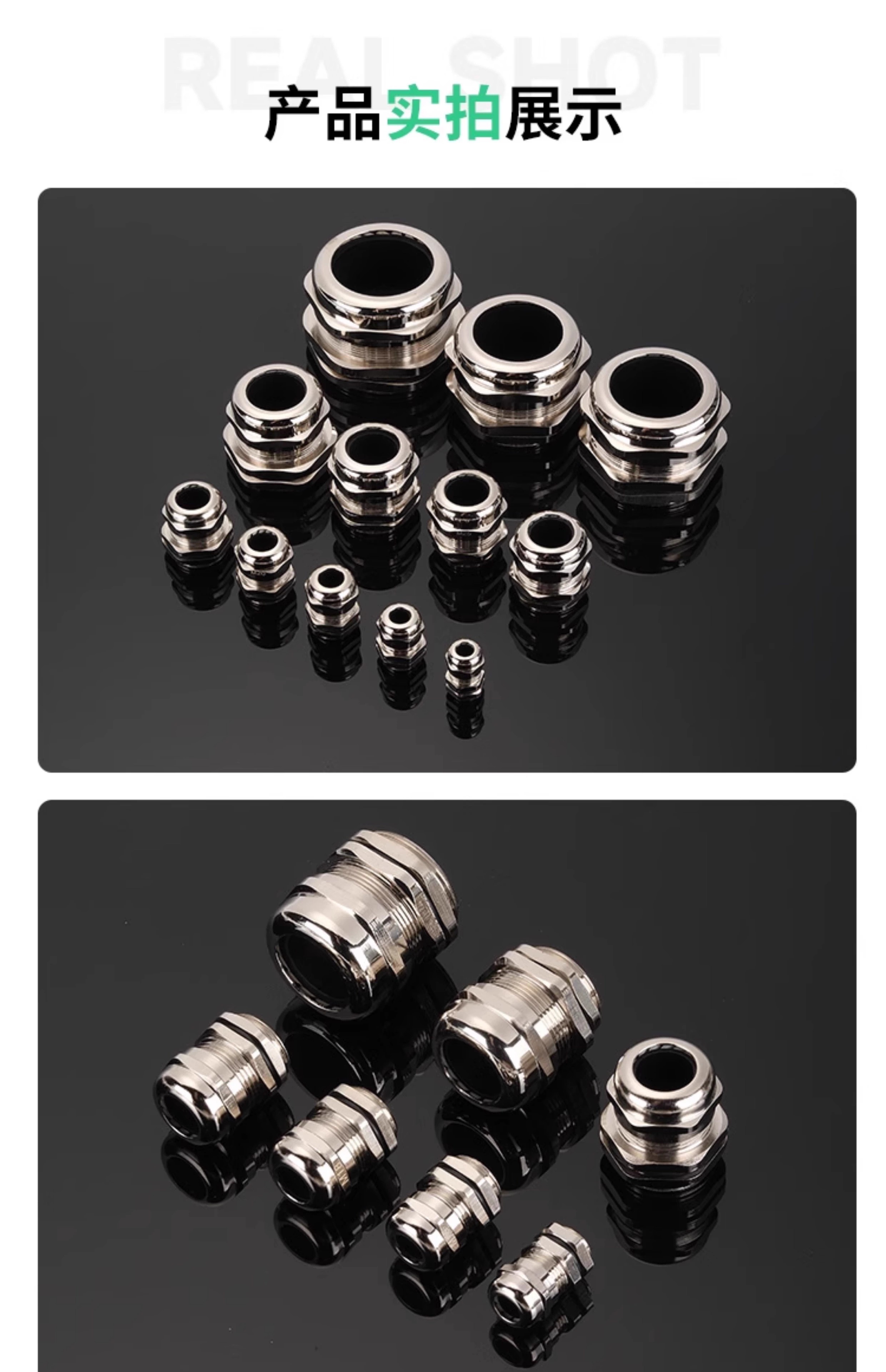 防爆金属电缆防水接头铜镀镍葛兰锁紧密封格兰连接器M10M12