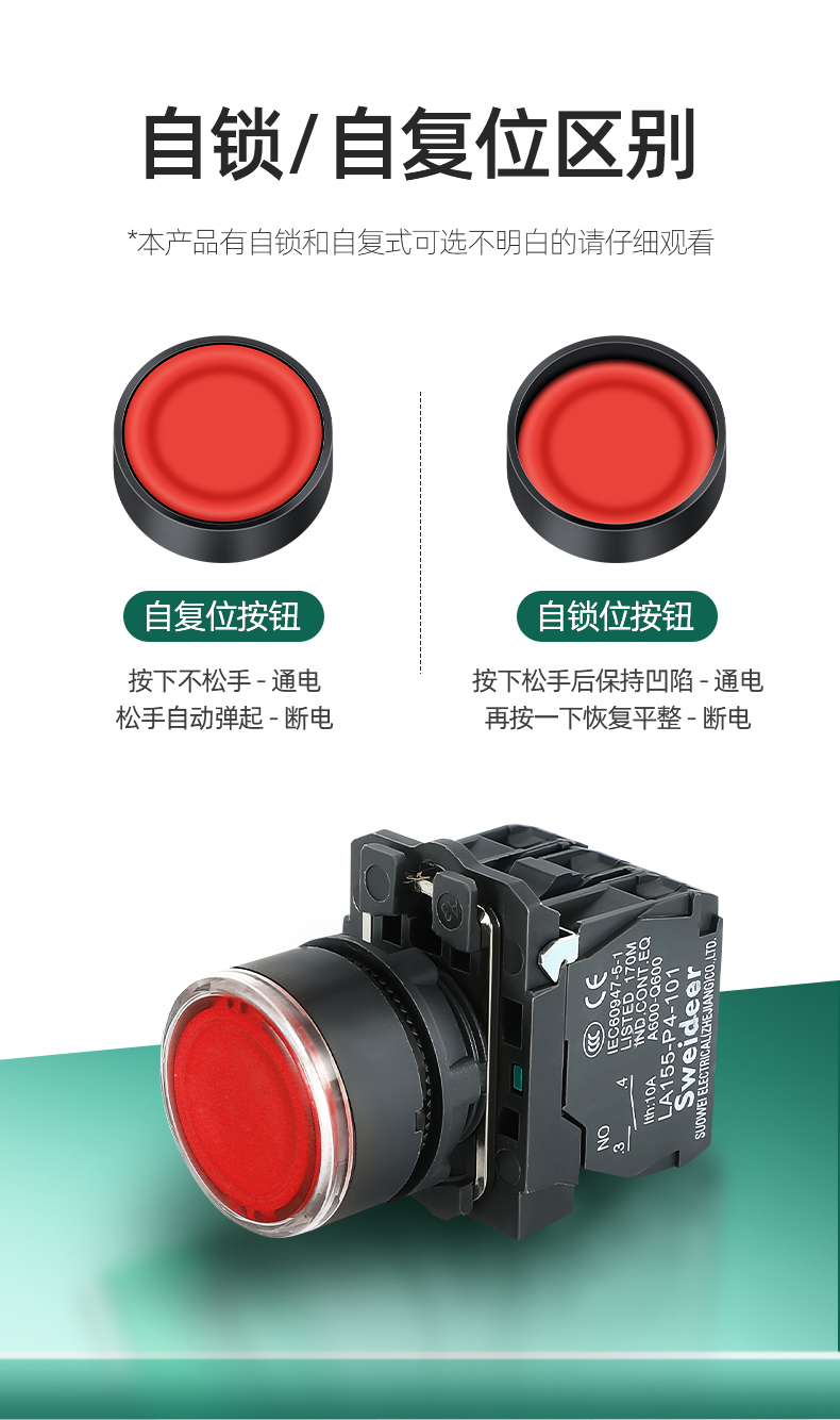 LA155-E3系列Sweideer一体式开孔22MM急停按钮开关带自锁蘑菇头自复位点动按钮