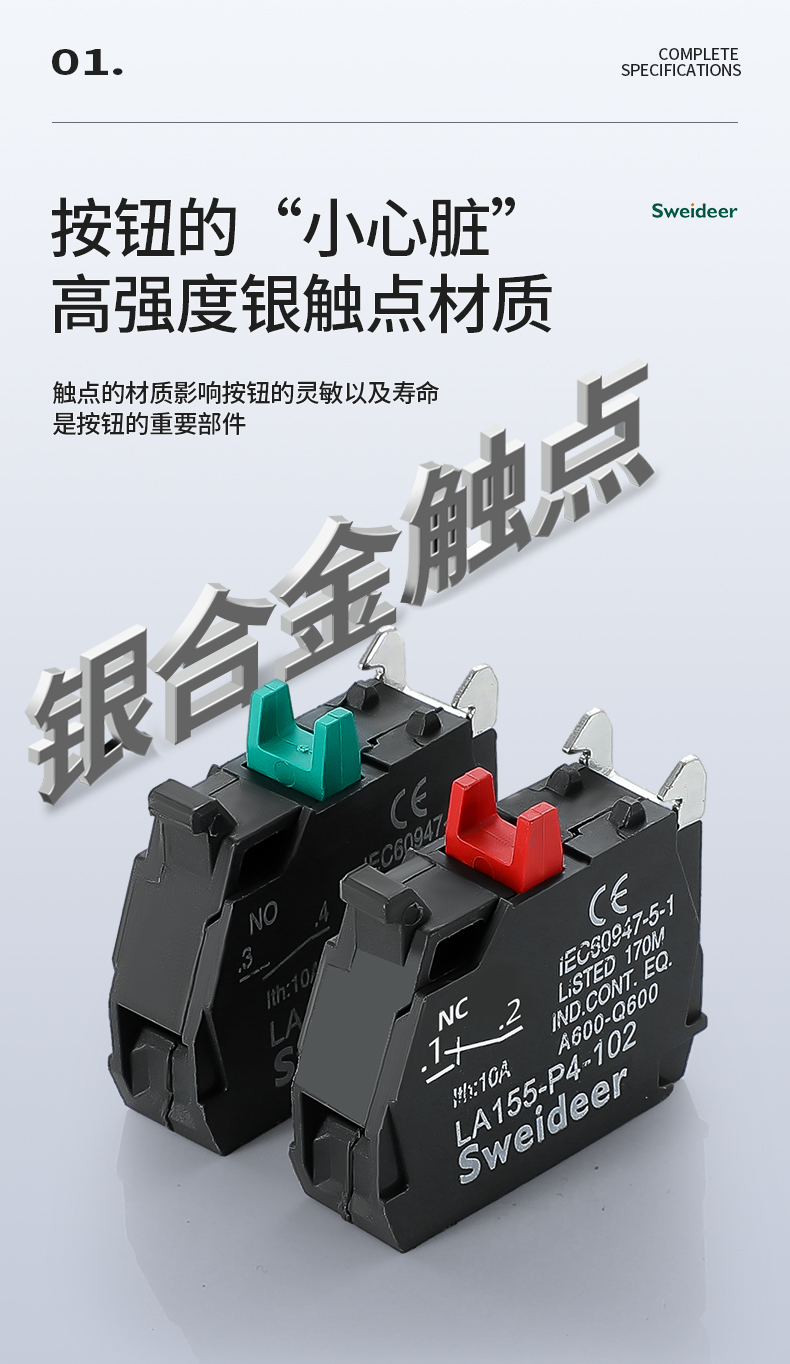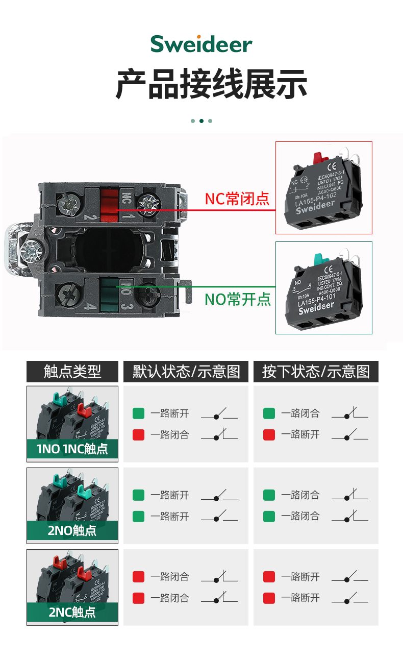 LA155-E3系列Sweideer一体式开孔22MM急停按钮开关带自锁蘑菇头自复位点动按钮