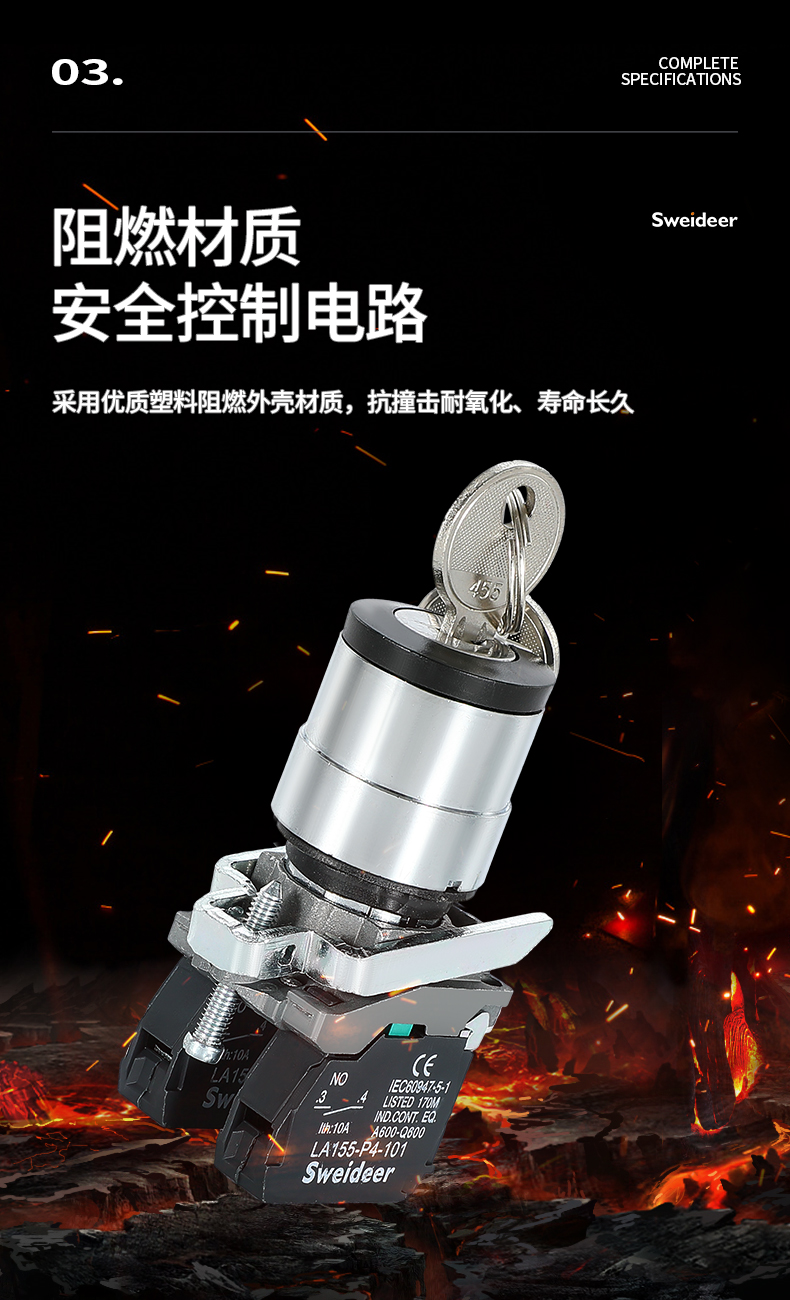 LA155-E3系列Sweideer 一体式旋钮开关 ED21钥匙开关二档三档电源转换开关22MM